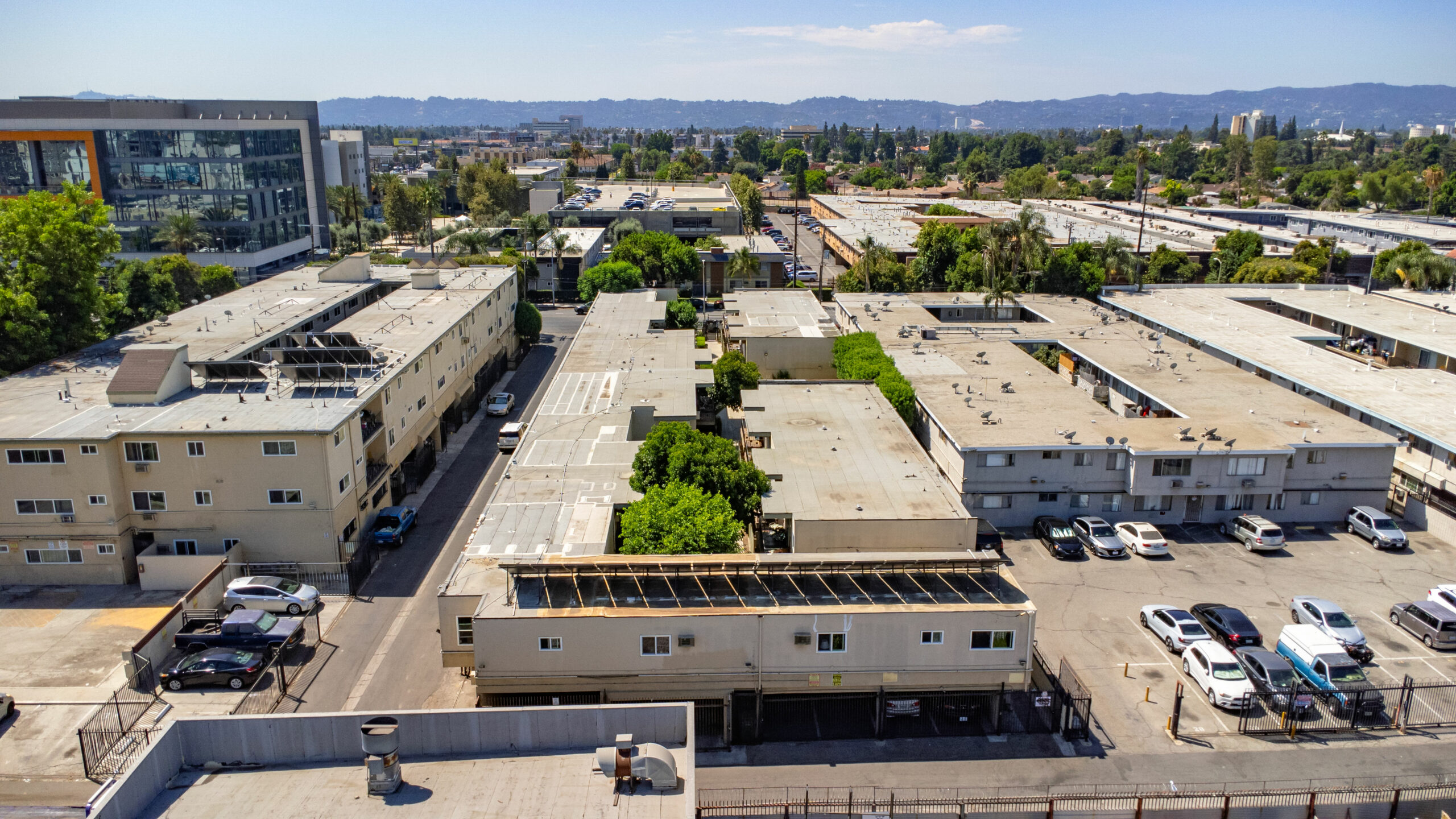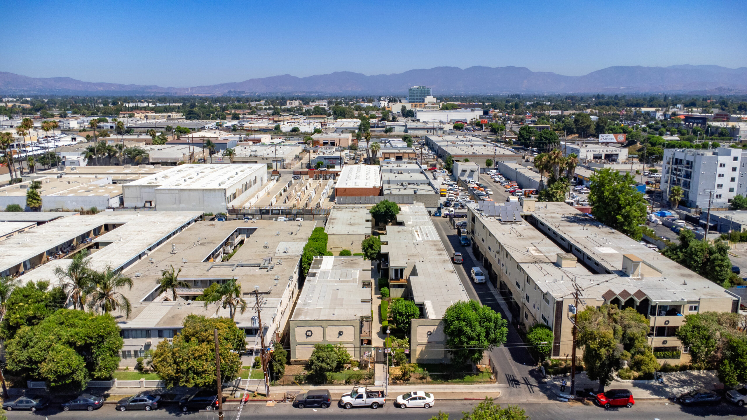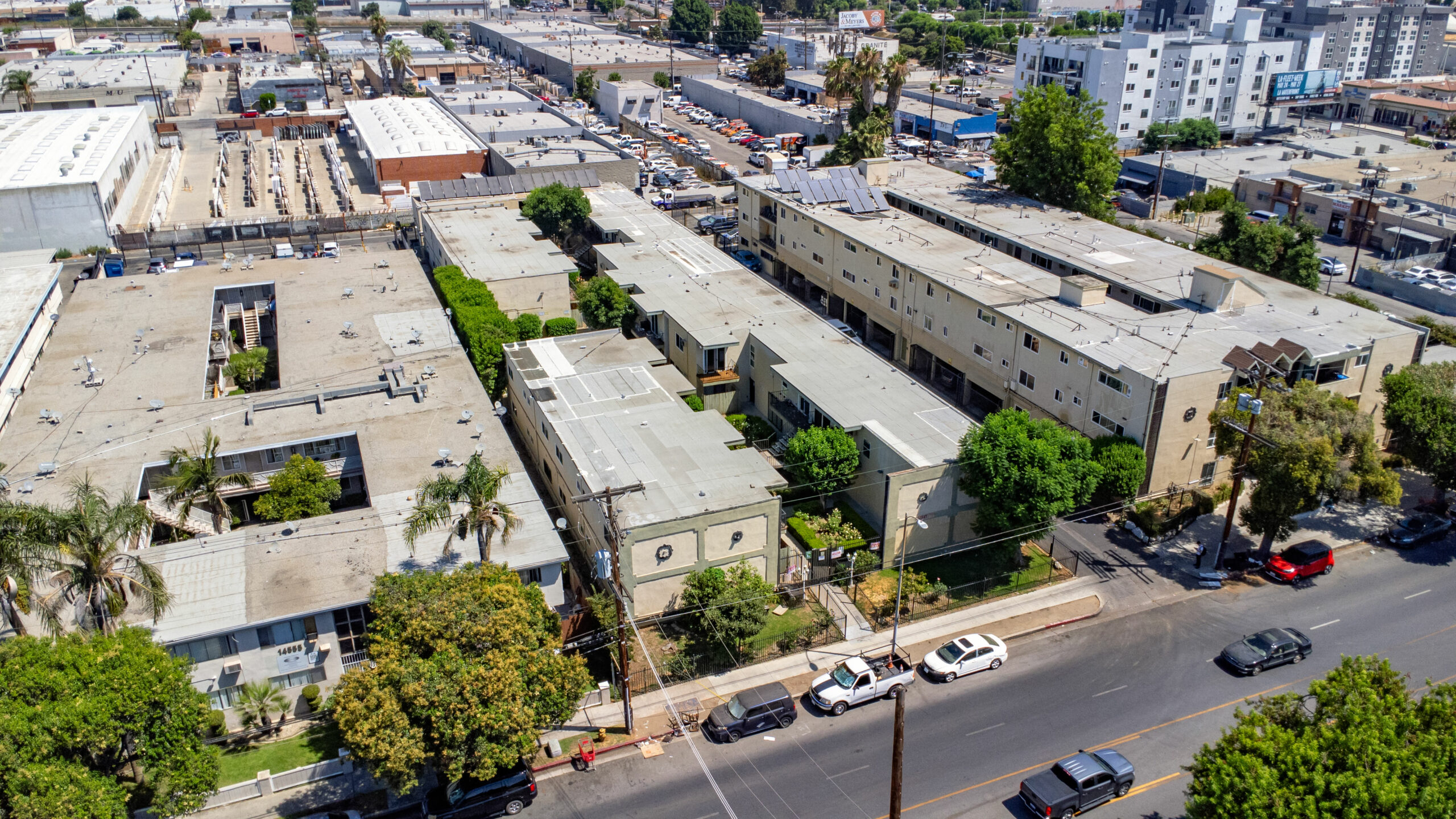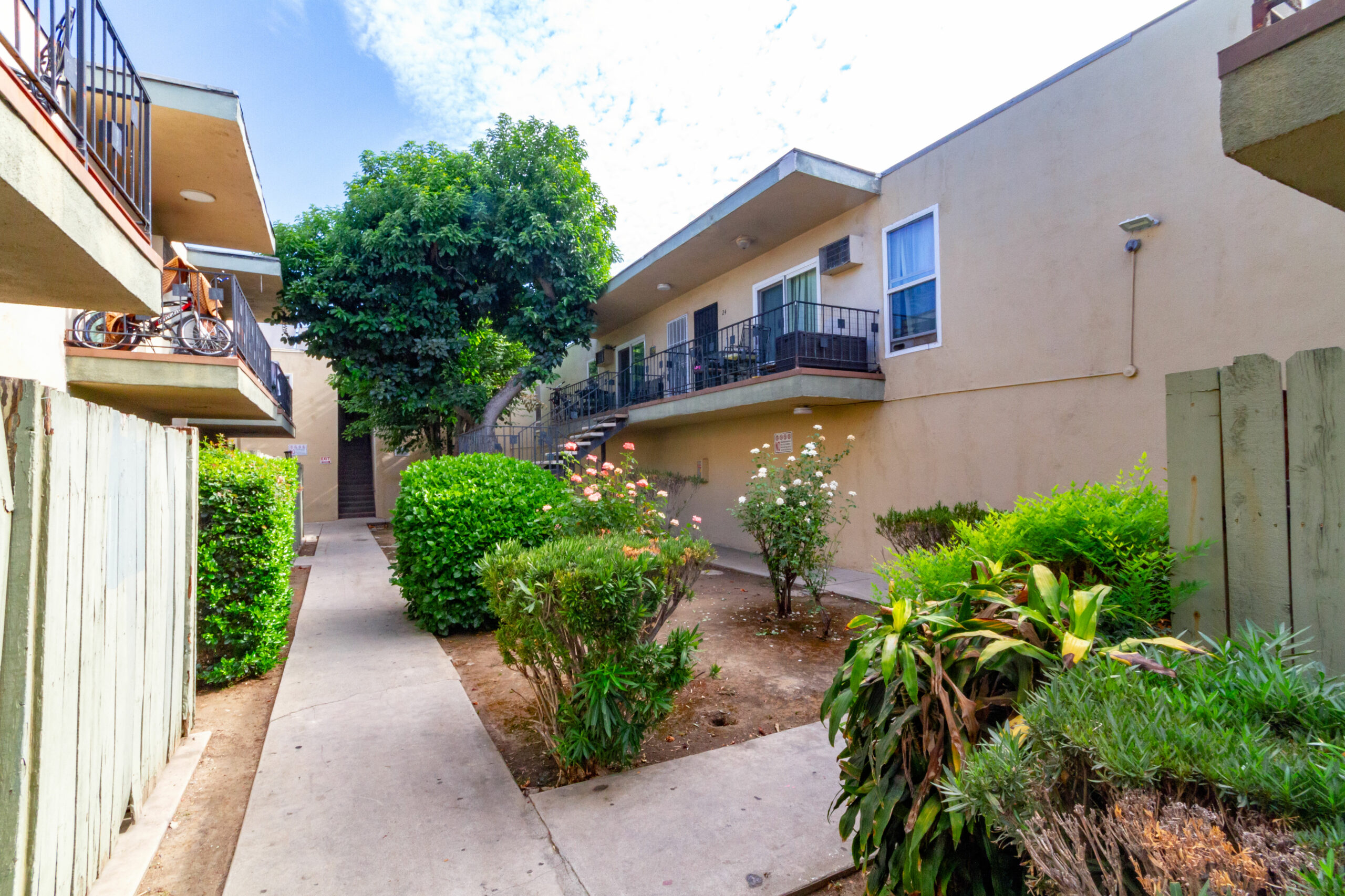 14547 Saticoy Street was built in 1964 and consists of 12 (2+1) and 18 (1+1) units that average approximately 800 and 650 gross square feet, respectively. The 2-story, 21,518 square foot structure is situated on a 26,351 square foot, LAR3-1 zoned lot with a common area courtyard and 26 individual parking spaces. The property’s units are spacious with lots of natural light and 28/30 units contain private patios or balconies. Roughly 70% of units have undergone some renovation. Renovations include new kitchen cabinets/pulls, quartz countertops, and carrara quartz slab shower stale lining, wood plank vinyl flooring, and new shower tile. There is no gas servicing the units (radiant heating and electric stoves), only the two water heaters (connected to a solar thermal system powered by solar panels on the roof), and common area laundry room onsite. All balcony decking has been recently updated and the Soft Story Retrofit work has been completed. The buildings are separately metered for electricity and contain a solar thermal system for hot water powered by solar panels on the roof of the structure. Gas service to the building is limited to heating master boiler water and laundry machines.