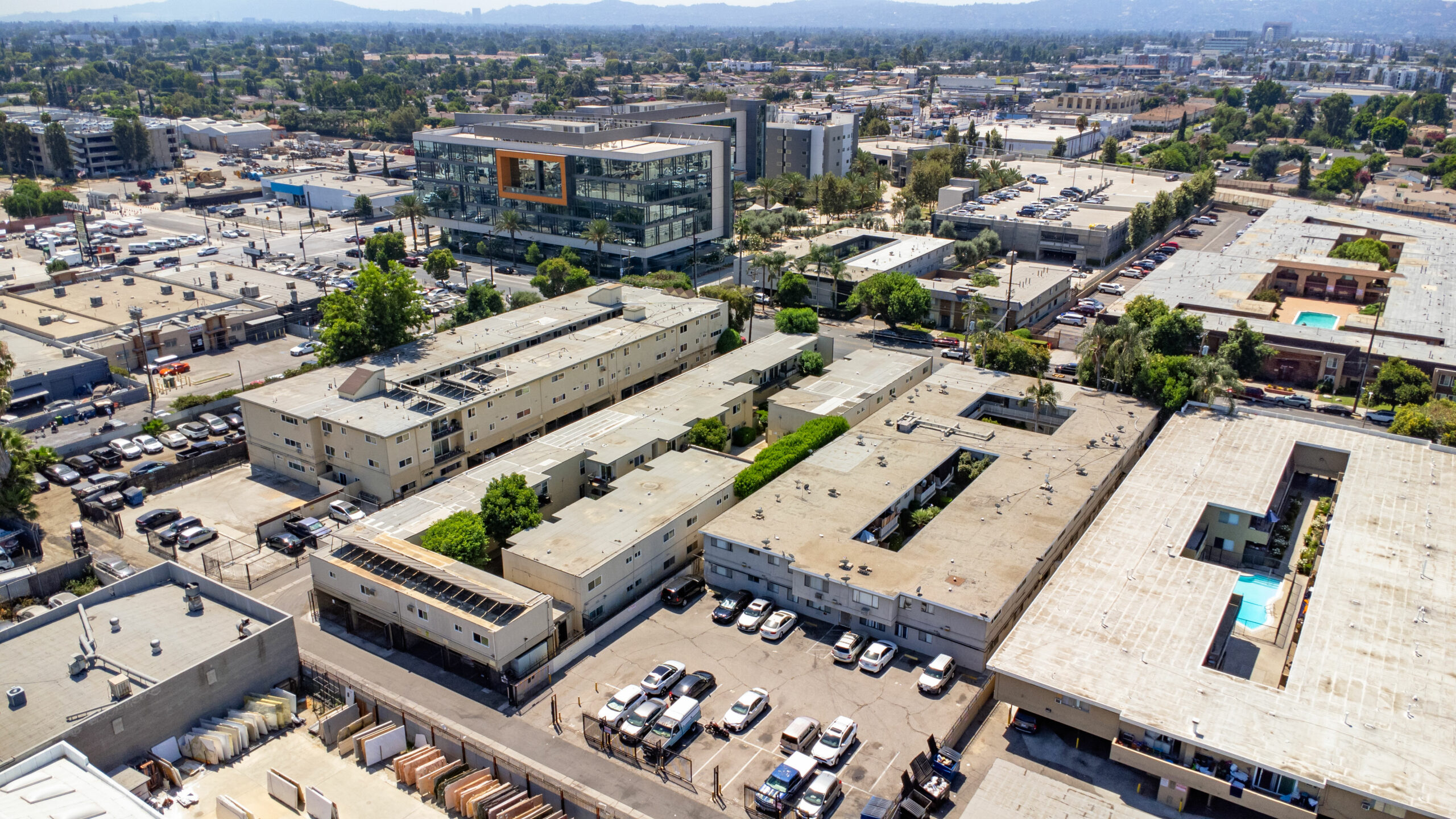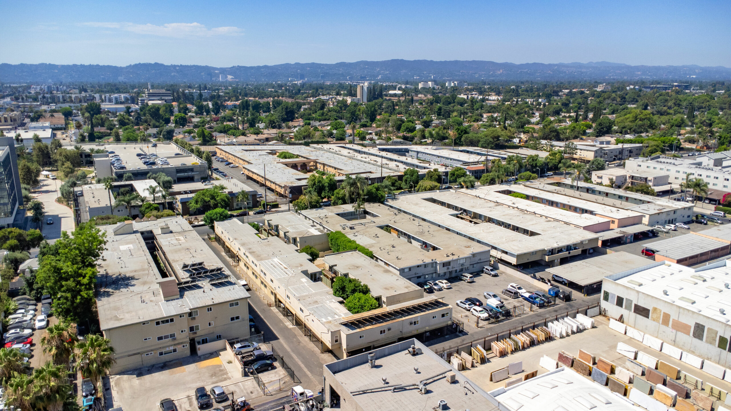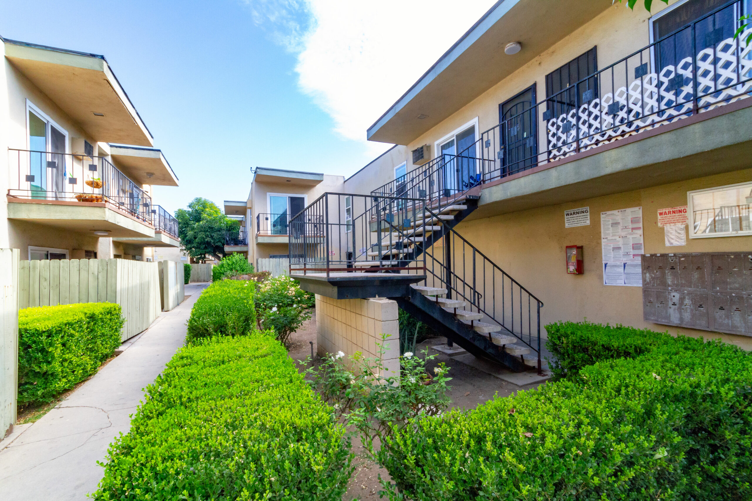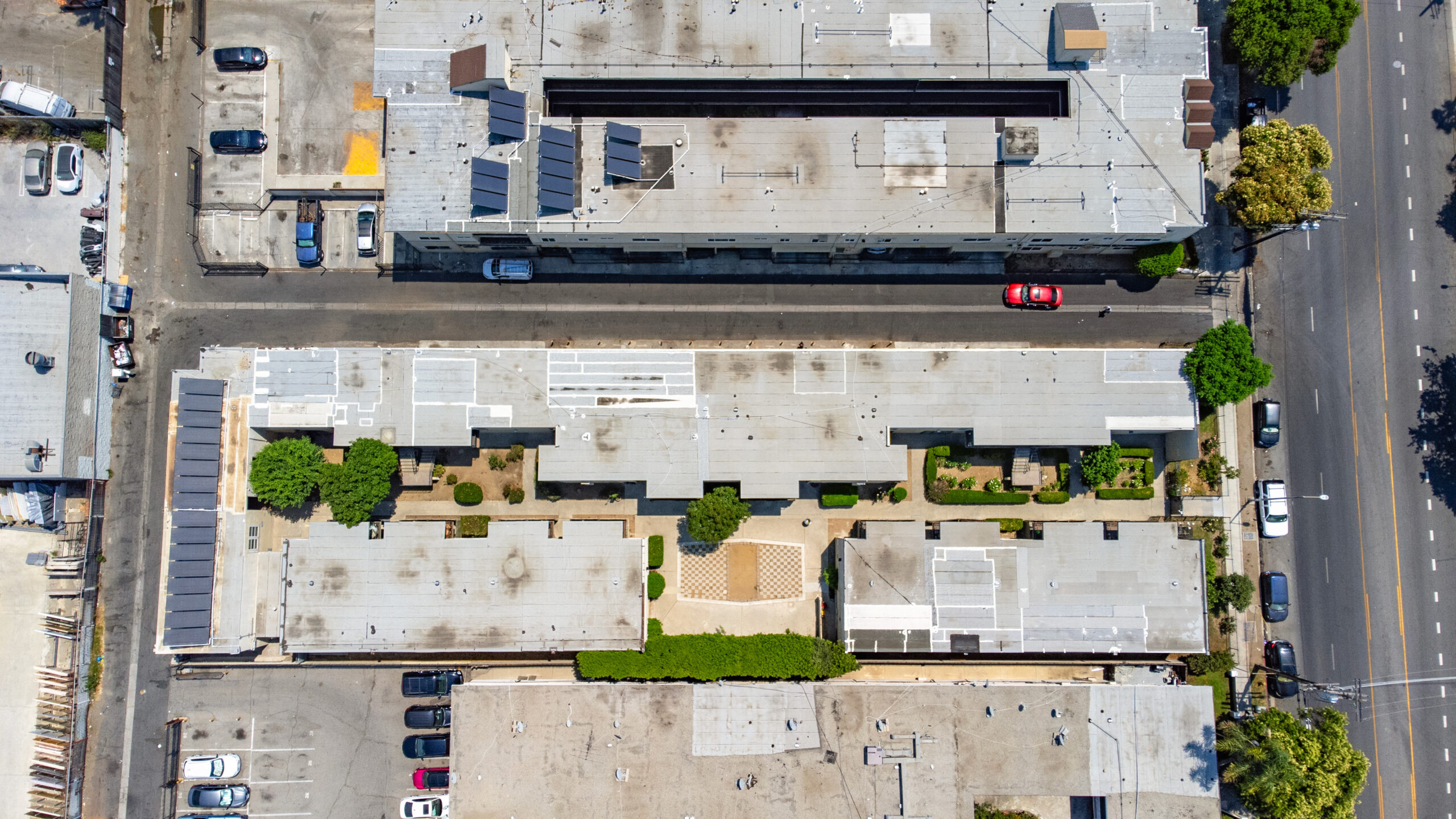 14547 Saticoy Street was built in 1964 and consists of 12 (2+1) and 18 (1+1) units that average approximately 800 and 650 gross square feet, respectively. The 2-story, 21,518 square foot structure is situated on a 26,351 square foot, LAR3-1 zoned lot with a common area courtyard and 26 individual parking spaces. The property’s units are spacious with lots of natural light and 28/30 units contain private patios or balconies. Roughly 70% of units have undergone some renovation. Renovations include new kitchen cabinets/pulls, quartz countertops, and carrara quartz slab shower stale lining, wood plank vinyl flooring, and new shower tile. There is no gas servicing the units (radiant heating and electric stoves), only the two water heaters (connected to a solar thermal system powered by solar panels on the roof), and common area laundry room onsite. All balcony decking has been recently updated and the Soft Story Retrofit work has been completed. The buildings are separately metered for electricity and contain a solar thermal system for hot water powered by solar panels on the roof of the structure. Gas service to the building is limited to heating master boiler water and laundry machines.
