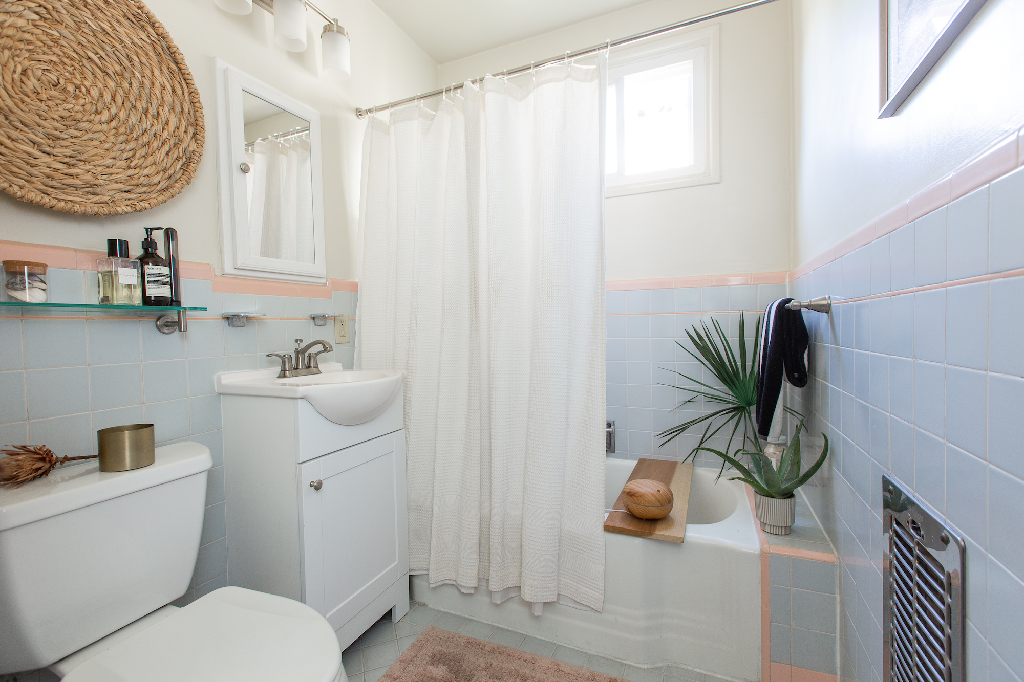 The bathrooms retain their original, Mid-Century tile, and 2 bedroom units include separate bathtubs and stall showers. The property is separately metered for gas and electric, and each unit contains its own water heater.