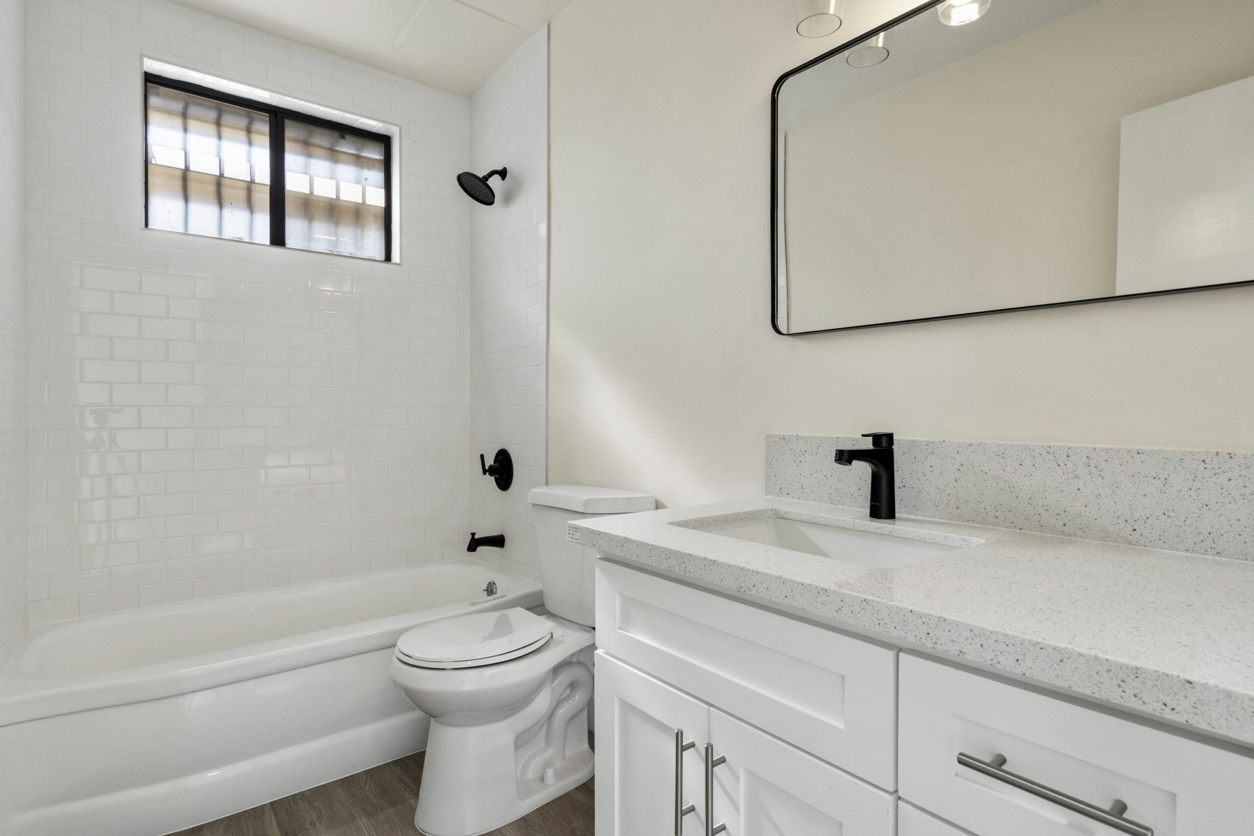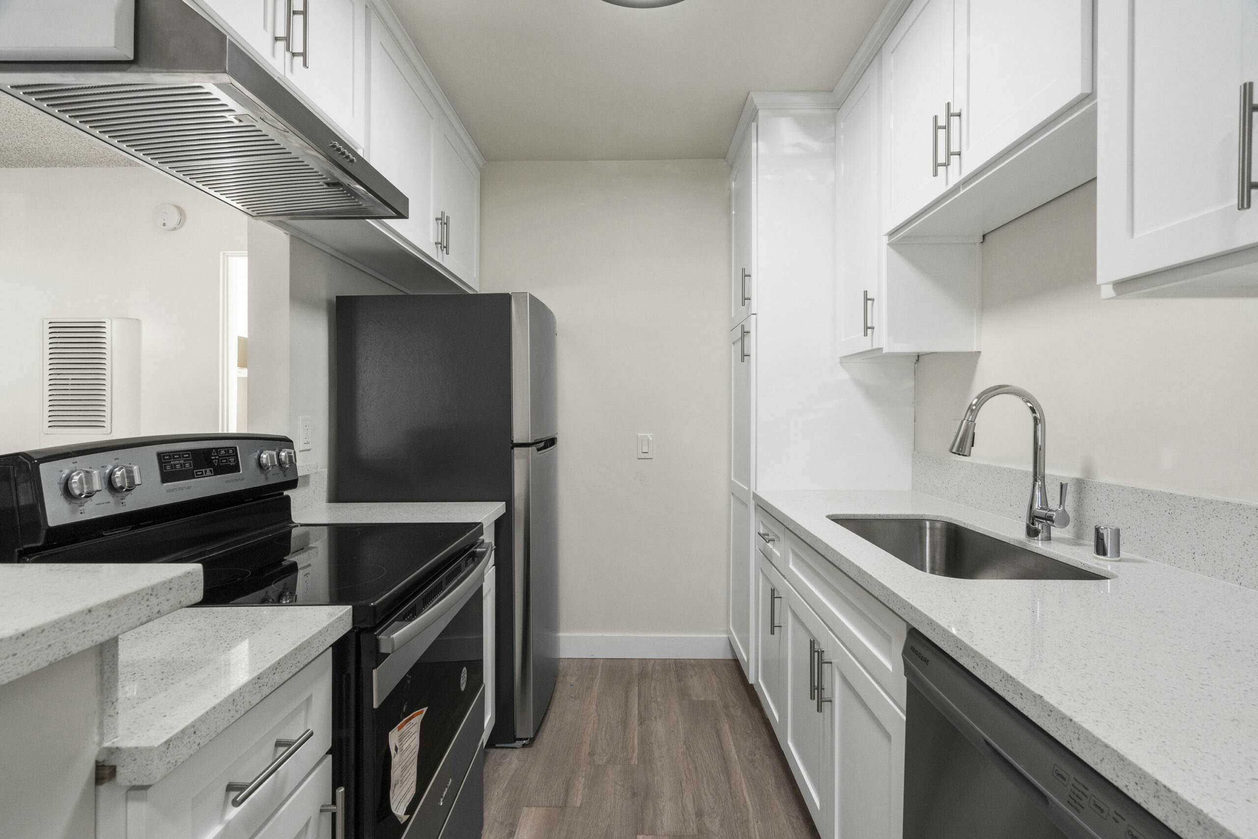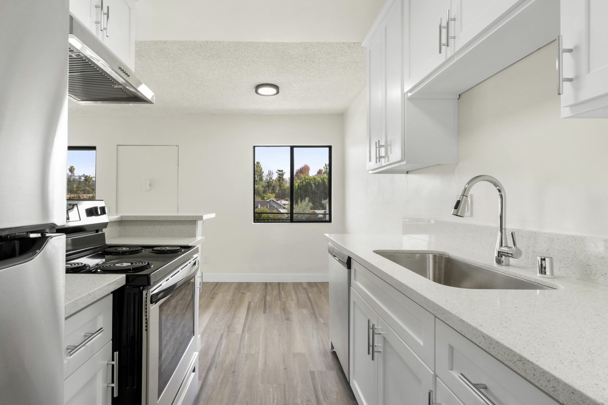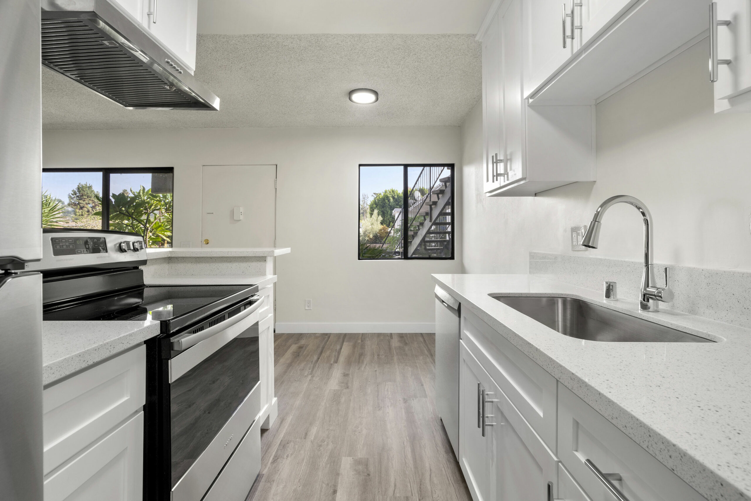 • Charming, well-maintained mid-century courtyard-style building w/ cool Palm Springs vibes on a cul-de-sac at the top of a tree-lined street of primarily single-family homes